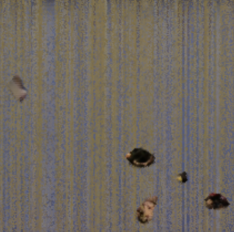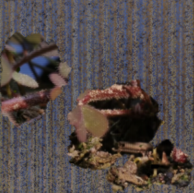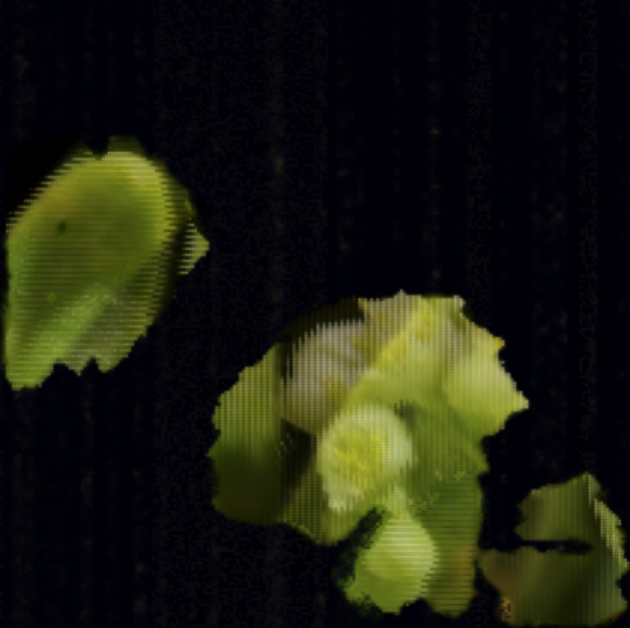 In terms of artistic application, I found that the “Petri Dish” behavior was the most striking and engaging as it develops over time. By utilizing logic that has both types’ growth responding to the population of a single species, and increasing the difference in the size that triggers this growth, we can see significantly more movement in the visual representation of the “specimen” growing in the “substrate”. In addition, by offsetting the size of population at which each species is stable, they coexist in more visually clear structures and with more interesting and complex behaviors. By assigning each species a different grayscale value we can juxtapose different manipulations of the video source material to get what looks like a living growing portal into the video suspended in its color palette.