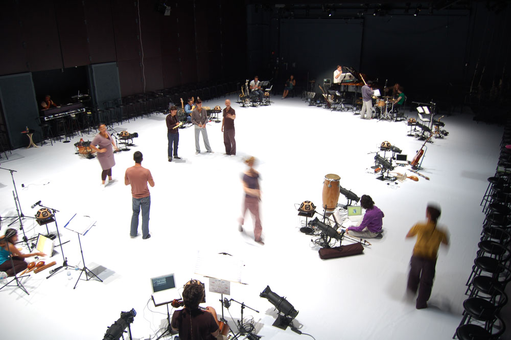 We designed the speakers using modified IKEA salad bowls and hand-build T-Amplifiers, and customized xlr to six 1/4″ speaker breakout cables. Additionally, we build custom stands for the speakers that could house an audio interface, and could be mounted to short mic stands. The hemispherical speakers were first used in David Rosenboom’s Ah! Opera, which premiered at Walt Disney REDCAT in the summer of 2009. Additionally, the speakers were used as monitoring systems for The Machine Orchestra performances, as well as numerous performances from students in the MTIID department at CalArts.