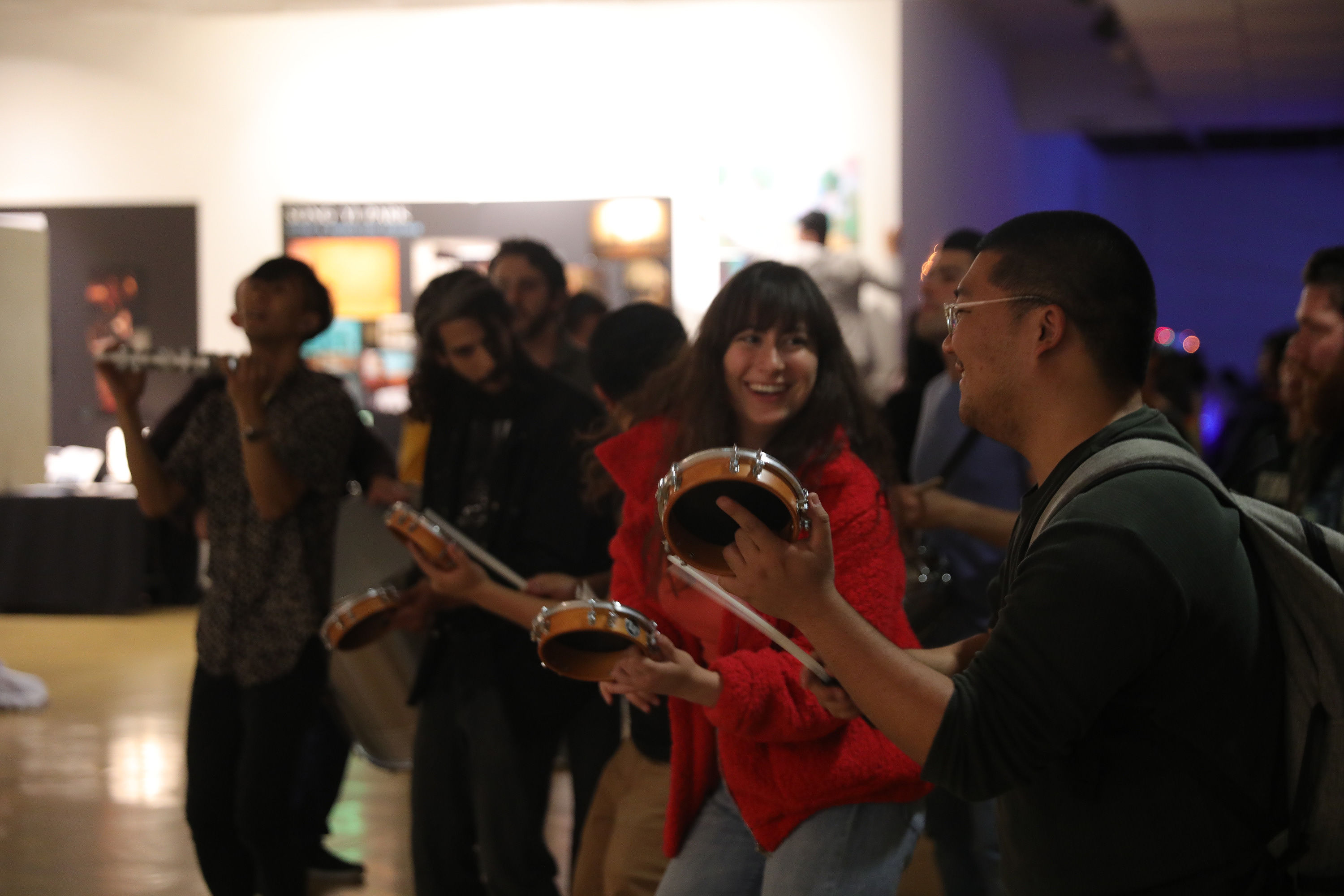 Machine Orchestra Features Hack Guitar, Trampoline Triggered Music Cues